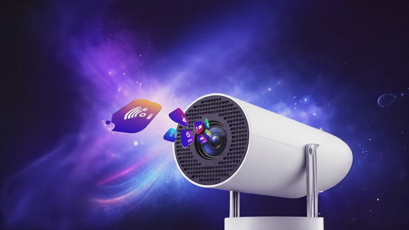 The newest Magcubic HY300 projector features a modern exterior and the powerful Hi-chip A3100 processor. With 1GB RAM + 8GB ROM, you can easily stream movies, TV shows, live sports, and music directly from your phone or laptop. Built-in 3W HiFi speakers provide clear and immersive sound.